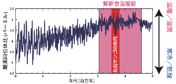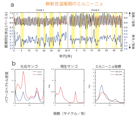 (a)化石サンゴに記録された鮮新世温暖期のエルニーニョ。