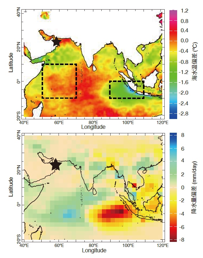 インド洋ダイポール現象は、数年周期で発生するインド洋の大気と海洋の相互作用のことです。インド洋ダイポール現象発生時、西インド洋で平年よりも多雨・温暖化、東インド洋で乾燥・寒冷化し、インド洋周辺諸国の社会に重大な影響を及ぼします。20世紀に確認された地球温暖化に伴って、インド洋ダイポール現象の発生頻度が増加していることが知られていましたが、1990年代後半から確認されていた地球温暖化の停滞がインド洋ダイポール現象へ与えた影響は未解明でした。