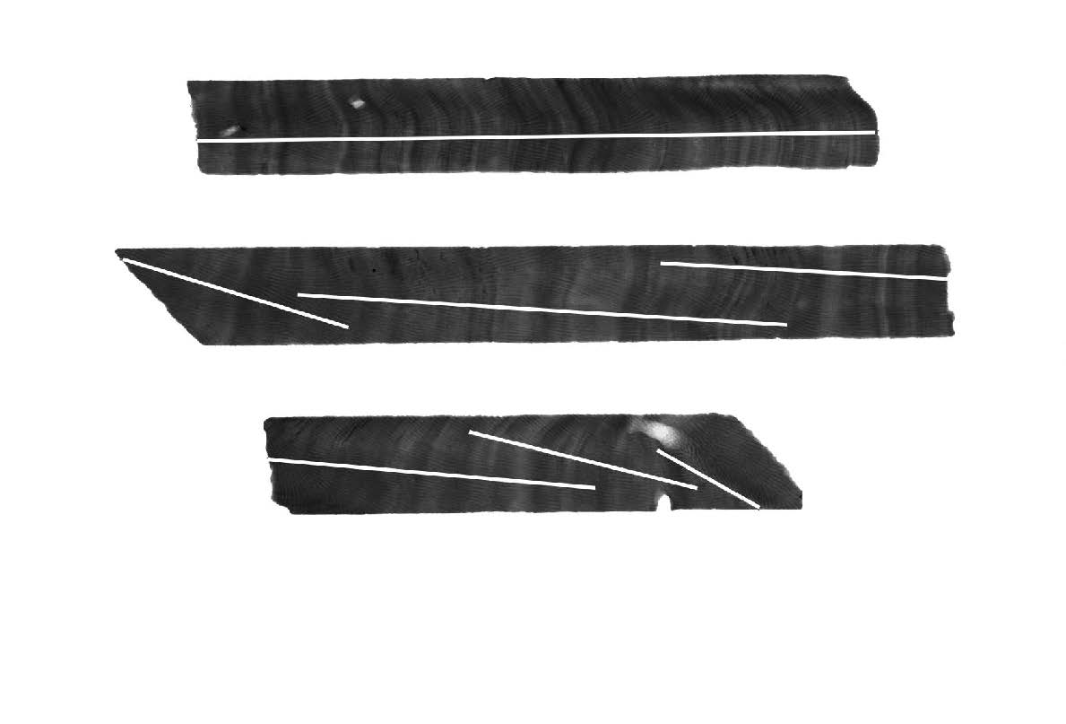 研究グループは,北⻄インド洋のオマーン湾に⽣息する造礁性サンゴ群体から,⻑さ 71cm の⾻格柱状試料を採取し,2 週間に相当する年輪ごとに区切って化学分析(酸素安定同位体⽐,Sr/Ca ⽐) を⾏いました(図 2)。サンゴの⾻格には樹⽊のように年輪が刻まれており,過去の⼤気・海洋の環境変動が 1 週間〜1 ヶ⽉間程度の細かい精度で記録されています。サンゴ⾻格中の化学組成の変化からわかる海⽔温・塩分変動を基に,地球温暖化の停滞現象,北⻄インド洋オマーン湾の気候及びインド洋ダイポール現象の関係を調査しました。